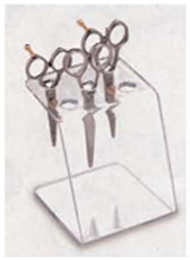 Sehr stabiler Scherenhalter aus Plexiglas,stehend, für 5 Scheren bis 20 cm Länge.